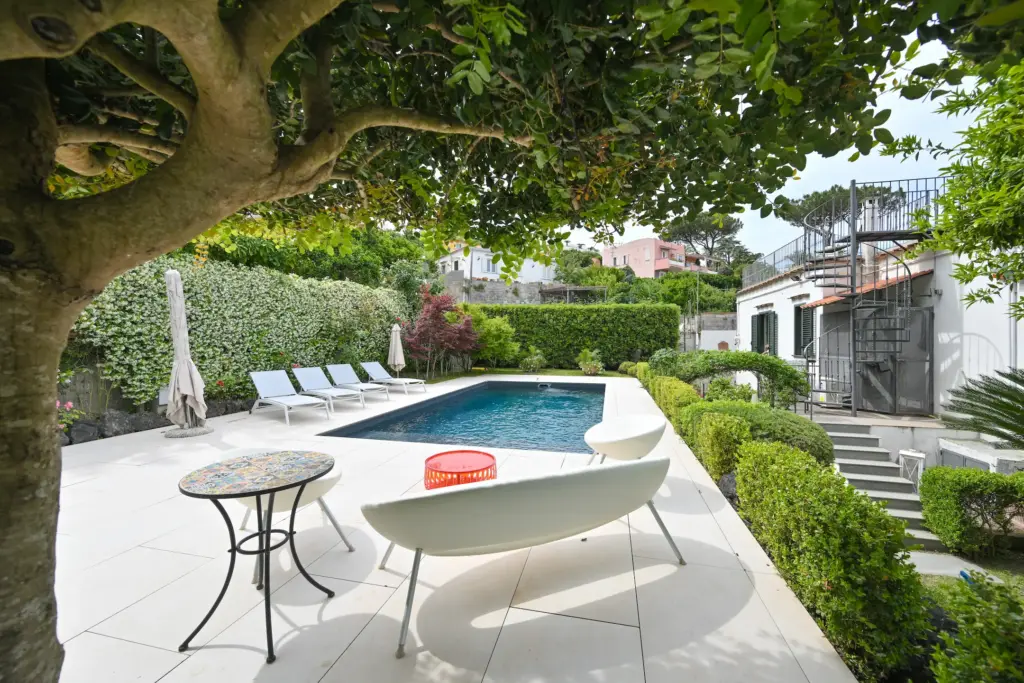 Realizzazione di una piscina con area prendisole e ridisegno del giardino di una villa privata...